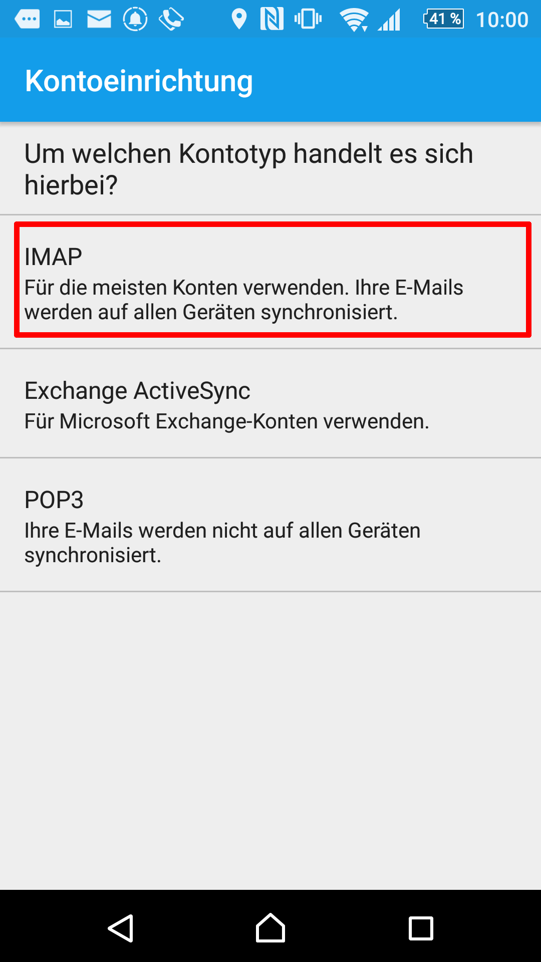 Bei bestimmten Geräten (z.B. Samsung Galaxy S7) kann es mit dem Sicherheitstyp "TLS" zu Problemen kommen. Verwenden Sie in diesem Fall als Sicherheitstyp "SSL" und Port 993. Alle anderen Einstellungen bleiben unverändert.